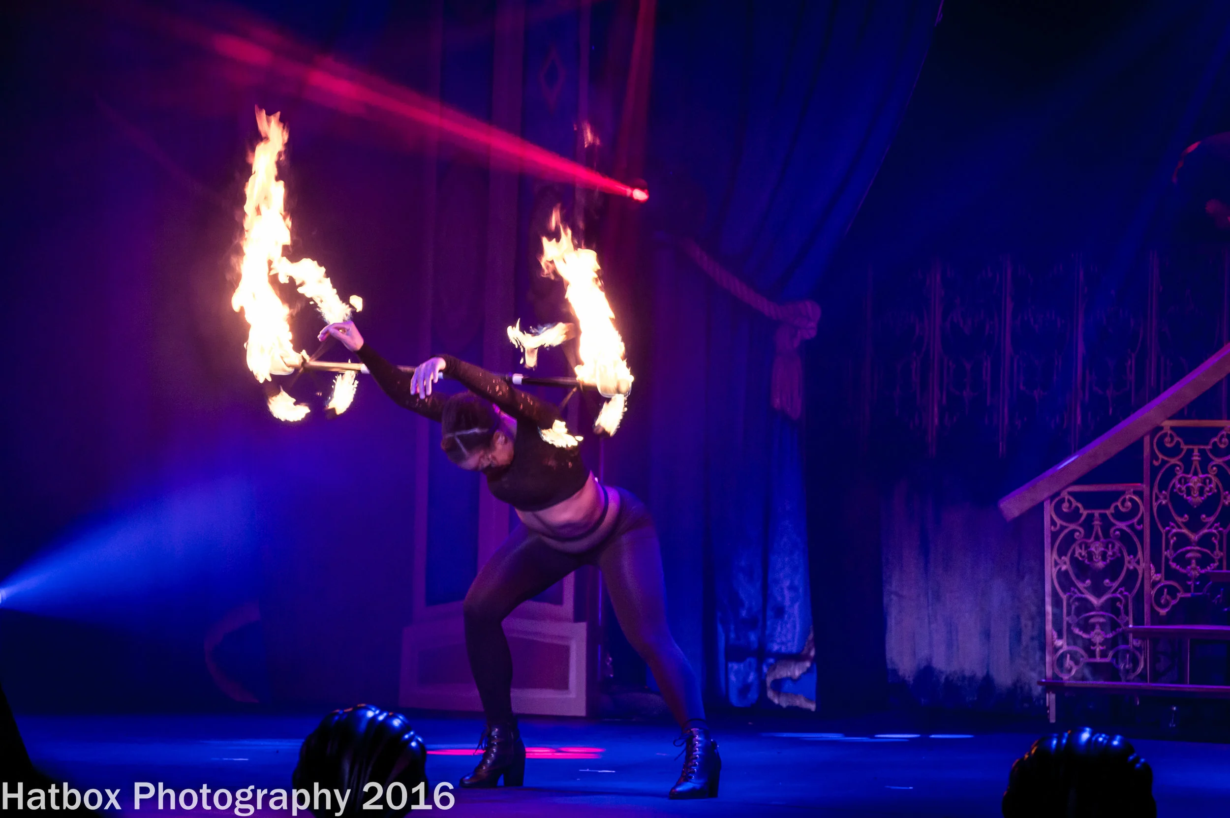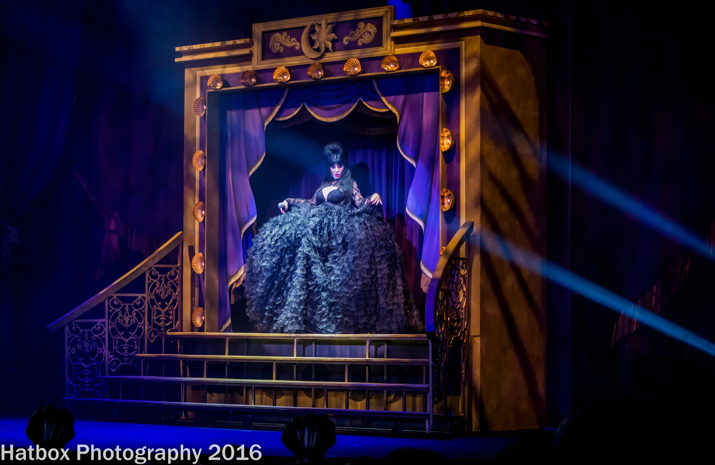Mistress of the Dark. Who doesn't love Elvira?? She is a Halloween icon and it's great to have her back for her 4th consecutive year. This year's show might be one of the best one's since her return. The jokes are funny and typical of Elvira. In one portion of the show a woman dances beautifully with fire. Then later, a chandelier is used in a great dance/acrobatic number. Our favorite moments though come from the solicited audience participation. I mean hey, when the mistress of the dark invites you up on stage for some karaoke....You karaoke! The 2014 show with the Academy of Villains, Brett Loudermilk and Bendable Bonnie was our favorite, but this year's show is a close second. If you love Elvira, dancing or even just need a break from running around, go see Elvira's Danse Macabre. Sit back and enjoy everyone's favorite ride......Elvira.