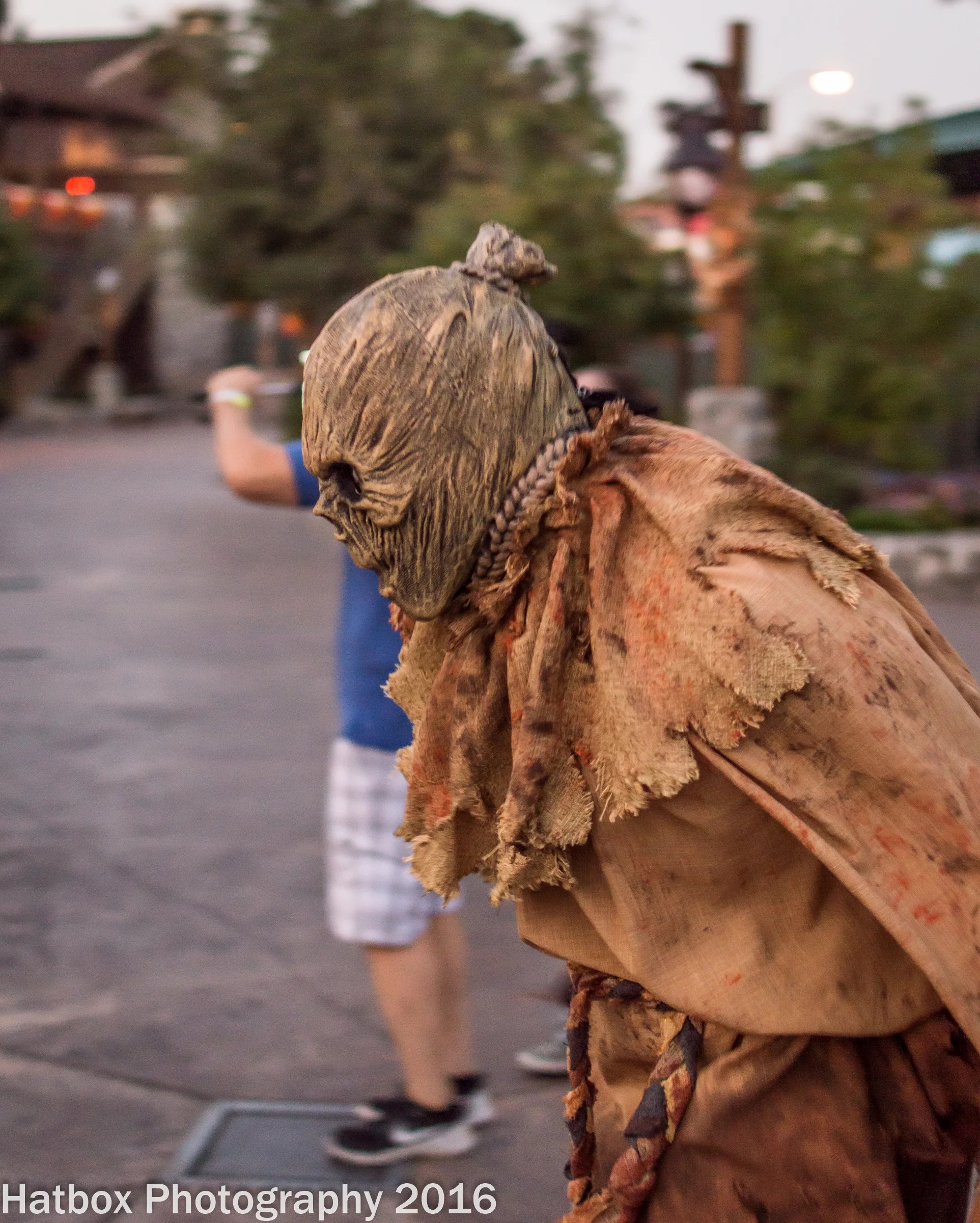 With Infected moving backstage, it once again freed up the Camp Snoopy area for a scare zone. Rather than bring back successful scare zones The Gauntlet or Necropolis, Knott's decided to use the Headless Horseman character that's been seen in the park the last couple of years and created a scare zone based off of stories of the Horseman. The Hallows is full creepy characters that lurk in the shadows waiting to scare. It doesn't have a thematic tone in its lighting as have previous themes in CS. There are no distinguishable props which leaves the design a bit lacking for our taste, but the talent makes up for this. They've done a great job navigating the darkness and adjusting to the atmosphere. Definitely a scare zone with great talent and energy.