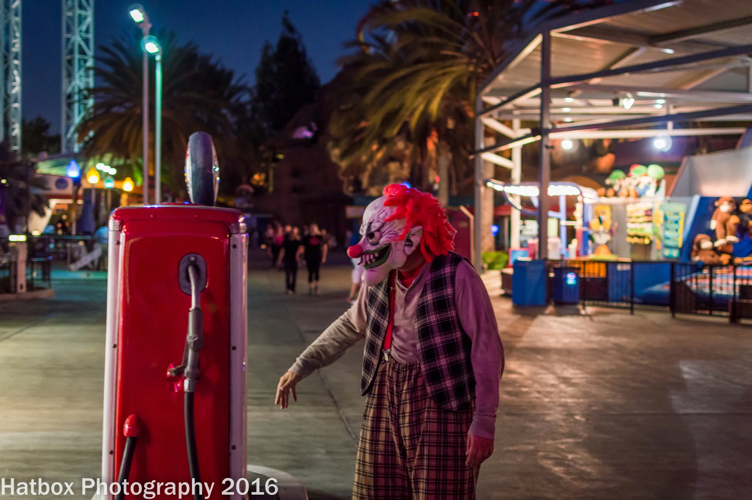 One of our favorite scare zones year after year is CarnEvil. This is the largest scare zone at Knott's and the brightest as far as lighting goes. Scaring under bright lights is challenging but every year this group comes together and reigns terror on guests night after night. Boardwalk has a lot of returning veterans and they were back to their old tricks on opening night. It's high energy fueled with comedy and screams. They continually engage with guests, making them feel comfortable in their presence, only to break that trust resulting in screams and running in fear. This is always a fun zone to sit in and watch the talent work. If you have time this season go to Boardwalk and watch these clowns work their magic. You'll either laugh or cry. It's up to them.